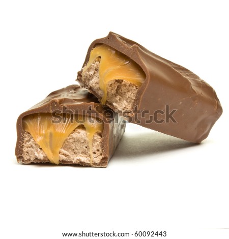 stock photo : Chocolate covered bar of soft caramel toffee and chocolate mouse.